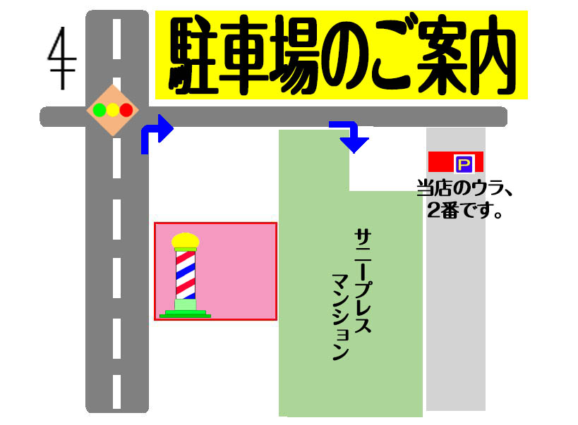 中央大通りを東へ、外環状線(170号線)を越えて、さらに東に走ると、次の信号を右折、左手のガストの手前の信号を左折して、マンションの駐車場をご利用下さい。 ※駐車場は、真裏のマンションの駐車場の2番をご利用ください。